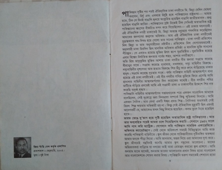 পাকিস্তানী বাহিনীর আত্মসমর্পণের সপ্তাহখানেক পরে একজন সাংবাদিক আমাকে বলেছিলেন, সেই দুঃস্বপ্নে ভরা দিনগুলো সম্পর্কে কিছু স্মৃতিকথা লিখতে। আমি একজন সৈনিক। আর লেখা একটি ঈশ্বর প্রদত্ত শিল্প। সৈনিকরা স্বভাবতই সেই বিরল শিল্পক্ষমতার অধিকারী হয় না। কিন্তু সেই ঐতিহাসিক মুহূর্তটি ছিল এমনই আবেগধর্মী যে, আমাকেও তখন কিছু লিখতে হয়েছিল। কলম তুলে নিতে হয়েছিল হাতে।ভারত ভেঙে দু’ভাগ হয়ে সৃষ্টি হয়েছিল অস্বাভাবিক রাষ্ট্র পাকিস্তানের। আর তার অব্যবহিত পরেই আমরা চলে গিয়েছিলাম করাচি। সেখানে ১৯৫২ সালে আমি পাস করি ম্যাট্রিক। যোগদান করি পাকিস্তান সামরিক একাডেমিতে। অফিসার ক্যাডেটরূপে। সেই থেকে অধিকাংশ সময়ই বিভিন্ন স্থানে আমি কাজ করেছি পাকিস্তানী বাহিনীতে। স্কুল জীবন থেকেই পাকিস্তানীদের দৃষ্টিভঙ্গির অস্বচ্ছতা আমার মনকে পীড়া দিতো। আমি জানতাম, অন্তর দিয়ে ওরা আমাদের ঘৃণা করে। স্কুল জীবনেই বহুদিনই শুনেছি আমার স্কুল বন্ধুদের আলোচনা। তাদের অভিভাবকরা বাড়িতে যা বলতো তাই তারা রোমন্থন করতো স্কুল প্রাঙ্গণে। আমি শুনতাম মাঝে মাঝেই, শুনতাম তাদের আলোচনার প্রধান বিষয় হতো বাংলাদেশ আর বাংলাদেশকে শোষণ করার বিষয়। পাকিস্তানী তরুণ সমাজকেই শেখানো হতো বাঙালিদের ঘৃণা করতে। বাঙালিদের বিরুদ্ধে একটা ঘৃণার বীজ উপ্ত করে দেওয়া হতো স্কুল ছাত্রদের শিশু মনেই। শিক্ষা দেয়া হতো তাদের, বাঙালিকে নিকৃষ্টতম মানবজাতি রূপে বিবেচনা করতে। অনেক সময়ই আমি থাকতাম নীরব শ্রোতা। আবার মাঝে মধ্যে প্রত্যাঘাত হানতাম আমিও। সেই স্কুল জীবন থেকেই মনে মনে আমার একটা আকাঙ্ক্ষাই লালিত হতো, যদি কখনো দিন আসে, তাহলে এই পাকিস্তানবাদের অস্তিত্বেই আমি আঘাত হানবো। সযত্নে এই ভাবনাটাকে আমি লালন করতাম। আমি বড় হলাম। সময়ের সাথে সাথে আমার সেই কিশোর মনের ভাবনাটাও পরিণত হলো। জোরদার হলো। পাকিস্তানী পশুদের বিরুদ্ধে অস্ত্র ধরার, দুর্বারতম আকাঙ্ক্ষা দুর্বার হয়ে উঠতো মাঝে মাঝেই। উদগ্র কামনা জাগতো পাকিস্তানের ভিত্তি ভূমিটাকে তছনছ করে দিতে। কিন্তু উপযুক্ত সময় আর উপযুক্ত স্থানের অপেক্ষায় দমন করতাম সেই আকাঙ্ক্ষাকে।