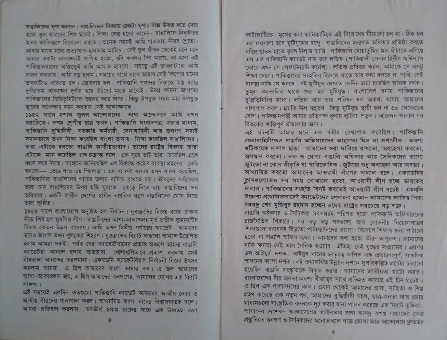 এই ঘটনাটি আমার মনে এক গভীর রেখাপাত করেছিল। পাকিস্তানি সেনাবাহিনীতেও বাঙালি অফিসারদের আনুগত্য ছিল না প্রশ্নাতীত। অবশ্য গুটি কয়েক দালাল ছাড়া। আমাদের ওরা দাবিয়ে রাখতো, অবহেলা করতো, অসম্মান করতো। দক্ষ ও যোগ্য বাঙালি অফিসার আর সৈনিকদের ভাগ্যে জুটতো না কোনো স্বীকৃতি বা পারিতোষিক। জুটতো শুধু অবহেলা আর অবজ্ঞা। আখ্যায়িত করতো আমাদের আওয়ামী লীগের দালাল বলে। একাডেমির ক্লাসগুলোতেও সব সময় বোঝানো হতো, আওয়ামী লীগ হচ্ছে ভারতের দালাল। পাকিস্তানের সংহতি বিনষ্ট করতেই আওয়ামী লীগ সচেষ্ট। এমন কি উদ্দেশ্য প্রণোদিতভাবেই ক্যাডেটদের শেখানো হতো, আমাদের জাতির পিতা বঙ্গবন্ধু শেখ মুজিবুর রহমান হচ্ছেন ওদের রাষ্ট্রের সবচেয়ে বড় শত্রু।বাঙালি অফিসার ও সৈনিকরা সব সময়ই পরিণত হতো পাকিস্তানি অফিসারদের রাজনৈতিক শিকারে। সব বড় বড় পদগুলো আর লোভনীয় নিয়োগপত্রের শিকাগুলো বরাবরই ছিঁড়তো পাকিস্তানিদের ভাগ্যে। বিদেশে শিক্ষার জন্য পাঠানো হতো না বাঙালি অফিসারদের। আমাদের বলা হতো ভীরু কাপুরুষ। আমাদের নাকি ক্ষমতা নেই ভালো সৈনিক হওয়ার। ঐতিহ্য নেই যুদ্ধের, সংগ্রামের। এরপর এলো আইয়ুবী দশক। আইয়ুব খানের নেতৃত্বে চালিত এক প্রতারণাপূর্ণ সামরিক শাসনের কালো দশক। এই তথাকথিত উন্নয়ন দশকে সুপরিকল্পিত প্রচেষ্টা চালানো হয়েছিল বাঙালি সংস্কৃতিকে বিকৃত করার। আামদের জাতীয়তা খাটো করার। বাংলাদেশের বীর জনতা অবশ্য বীরত্বের সাথে প্রতিহত করেছে এই হীন প্রচেষ্টা। এ ছিল এক পালাবদলের কাল। এখান থেকেই আমাদের ভাষা সাহিত্য ও শিল্প গ্রহণ করেছে এক নতুন পথ। আমাদের বুদ্ধিজীবীমহল, ছাত্র-জনতা আর প্রচার মাধ্যমগুলো সাংস্কৃতিক বন্ধনকে দৃঢ় করার জন্য পালন করেছে এক বিরাট ভূমিকা। আমাদের দেশের বাংলাদেশের স্বাধীনতার জন্য আসন্ন সশস্ত্র সংগ্রামের ক্ষেত্র প্রস্তুতিতে জনগণ ও সৈনিকদের মনোভাবকে গড়ে তোলা আর আন্দোলনে দ্রুততর গতি সঞ্চরণে এদের রয়েছে এক বিরাট অবদান। জাতীয়তাবাদ গড়ে তোলার একমাত্র উপাদান হচ্ছে এর সংস্কৃতি।