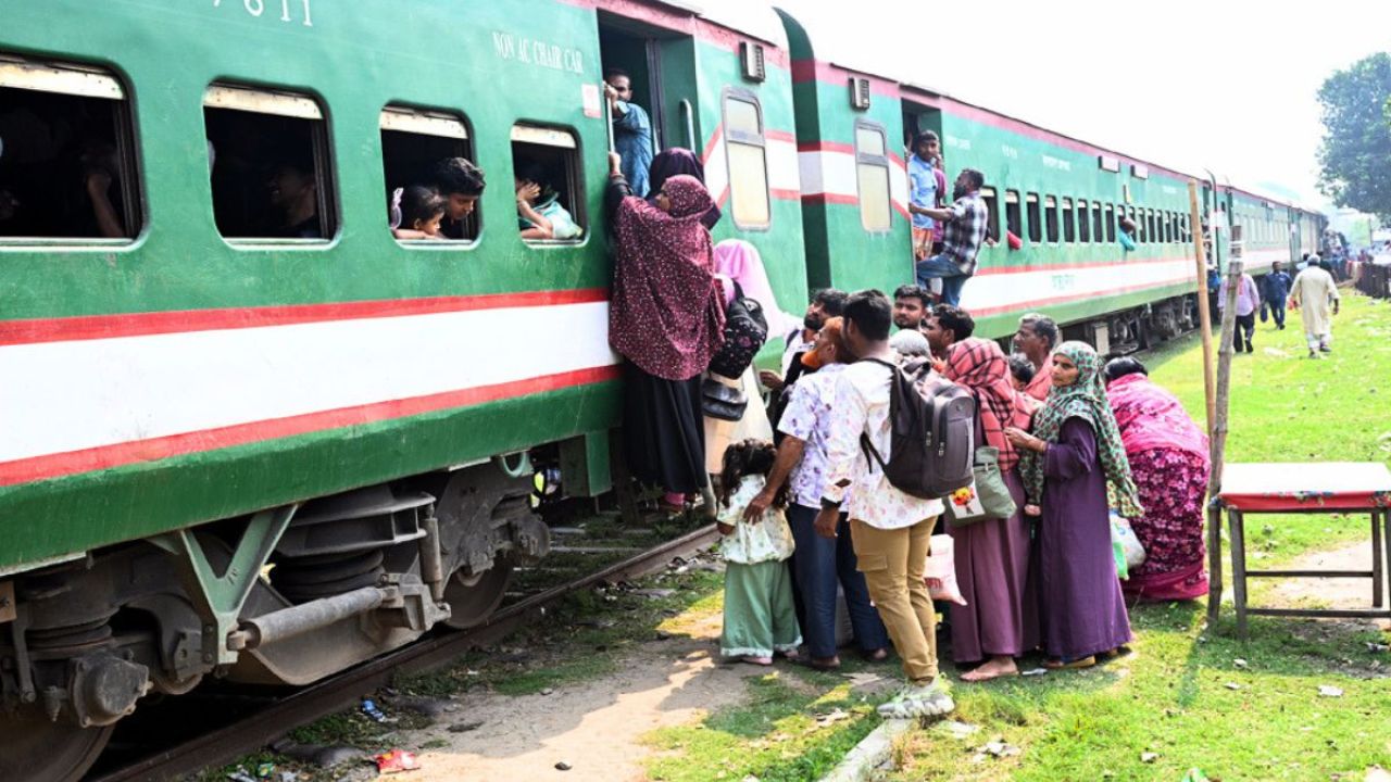 সমতল থেকে ট্রেনের পাদানিতে উঠতে একে অপরকে টেনে তুলছেন যাত্রীরা। উচ্চতা বেশি হওয়ায় অনেক নারী ও শিশু দীর্ঘ চেষ্টার পর ব্যর্থ হয়ে ২ নম্বর লাইন থেকে সরে যান। কিছুক্ষণ পর ১ নম্বর লাইনে এসে দাঁড়ায় ঢাকাগামী মধুমতি এক্সপ্রেস। ট্রেন দুটি স্টেশন ছেড়ে গেলেও প্ল্যাটফর্মে অনেক যাত্রীকে দাঁড়িয়ে থাকতে দেখা যায়।