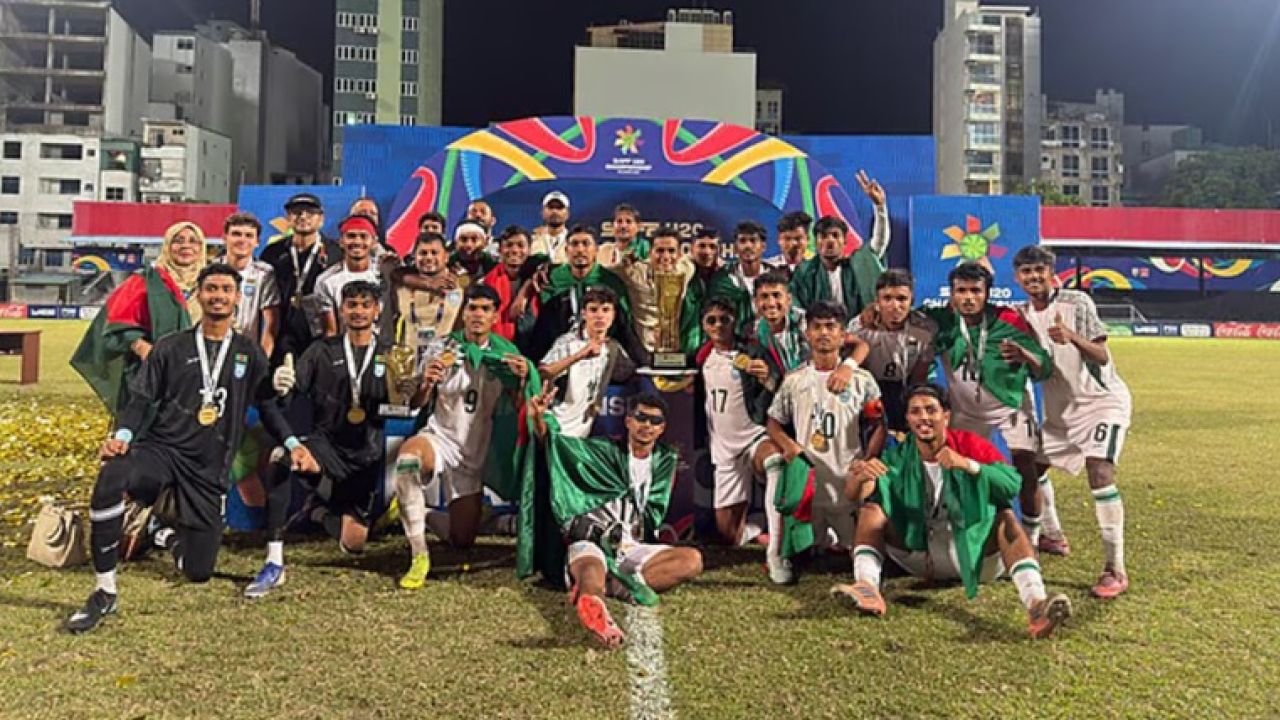 সাফ অনূর্ধ্ব-২০ চ্যাম্পিয়নশিপের ফাইনালে শুক্রবার মালদ্বীপের রাজধানী মালের জাতীয় স্টেডিয়ামে টাইব্রেকারে ভারতকে ৪-৩ গোলে হারিয়েছে বাংলাদেশ। এ নিয়ে টানা দ্বিতীয়বারের মতো শিরোপা ঘরে তুললো বাংলাদেশ।