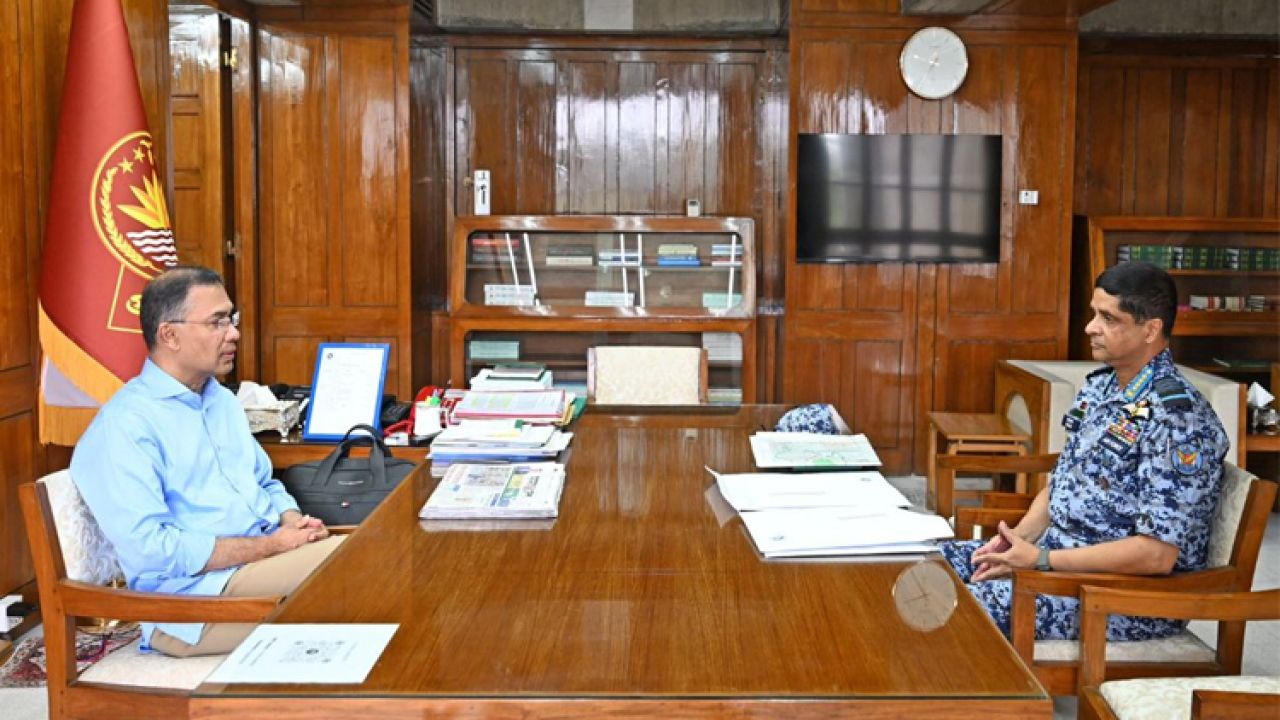 প্রধানমন্ত্রী তারেক রহমানের সঙ্গে সৌজন্য সাক্ষাৎ করেছেন বিমান বাহিনী প্রধান এয়ার চিফ মার্শাল হাসান মাহমুদ খাঁন।