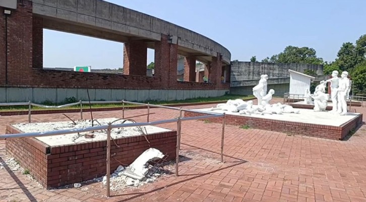ভেঙে চুরমার করা হয় বঙ্গবন্ধু শেখ মুজিবুর রহমানের ভাস্কর্যটি।এর সঙ্গে গুঁড়িয়ে দেওয়া হয় প্রায় তিনশো ছোট-বড় ভাস্কর্য। যেগুলো প্রতিটি একেকটি অধ্যায়-একাত্তরের পাকিস্তানি বাহিনীর বর্বরতা, মুক্তিযোদ্ধাদের দুর্দমনীয় সাহস, ত্রিশ লাখ শহীদের রক্ত, তিন লাখ মা-বোনের অশ্রু।পর্যটকদের দৃষ্টি কেড়ে নেওয়া সেই শিল্পকর্মগুলো এখন ধ্বংসস্তূপের নিচে। কোনো ভাস্কর্যে এখন শুধু হাত নেই, কারও নেই মাথা, কারও বুক ফুঁড়ে বেরিয়েছে ইটের টুকরো। যেখানে আগে দাঁড়িয়ে মানুষ নীরবে অশ্রু ফেলত, সেখানে এখন নিঃস্তব্ধতা আর বিষাদের ছায়া। বৈদ্যনাথ বাবুর সেই আমবাগান আজ বহন করছে একাধিক সত্য।