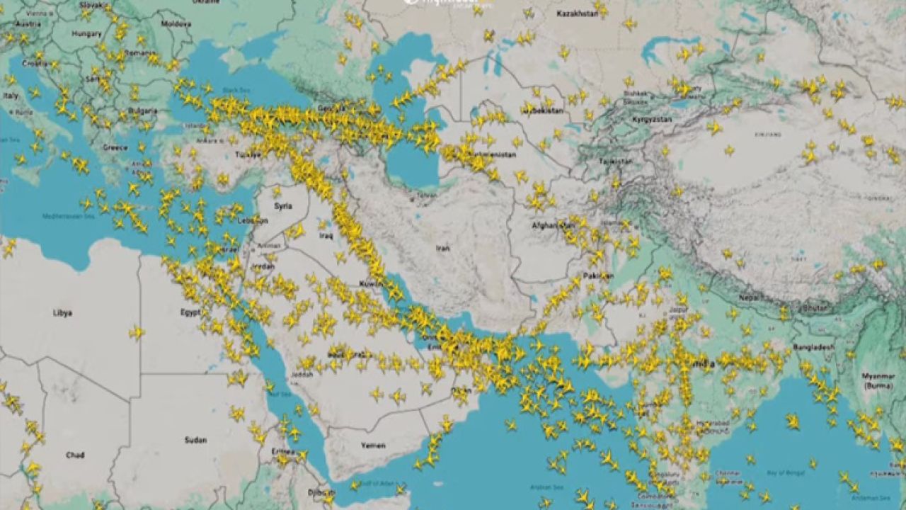 কোনো ফ্লাইটই তখন পর্যন্ত ইরানের ওপর দিয়ে চলাচল করেনি। বরং অধিকাংশ বিমান এখনও