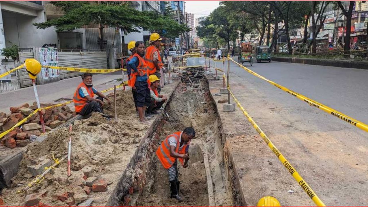 রাস্তা খোঁড়া হচ্ছে। ডিপিডিসি থেকে এর কাজ