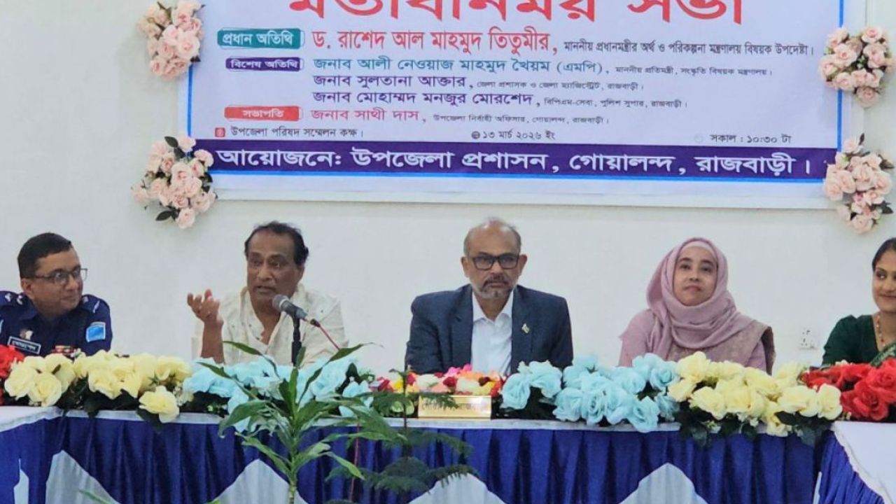 শুক্রবার (১৩ মার্চ) দুপুরে রাজবাড়ীর গোয়ালন্দ উপজেলা অডিটোরিয়ামে স্থানীয় ব্যক্তিদের সঙ্গে মতবিনিময় সভায় বিশেষ অতিথির বক্তব্যে তিনি এসব কথা বলেন।