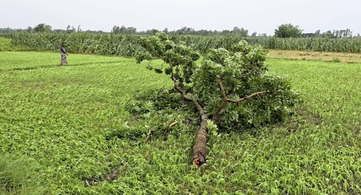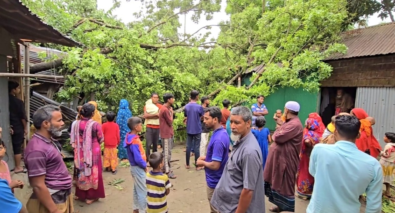 শনিবার (২৫ এপ্রিল) সকাল পৌনে ৭টার দিকে হঠাৎ ঝোড়ো হাওয়া ও শিলাবৃষ্টির সঙ্গে শুরু হয় এই তাণ্ডব। অল্প সময়ের মধ্যেই ঝড়ের তীব্রতা ভয়াবহ রূপ নেয়, যা স্থানীয়দের মধ্যে আতঙ্ক ছড়িয়ে দেয়।
