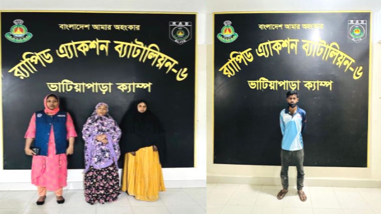 আটক ব্যক্তিরা হলেন—সাতক্ষীরা জেলার কলারোয়া উপজেলার উত্তর ভাদিয়ালী গ্রামের আব্দুল লতিফের ছেলে মো. রায়হান হোসেন (২৫), একই উপজেলার সোনাবাড়িয়া গ্রামের মো. আলম সানার স্ত্রী মোছা. ময়না বেগম (৬০) এবং জাহাবাজ সরদারের মেয়ে মোছা. মমতাজ বেগম (৫৮)।