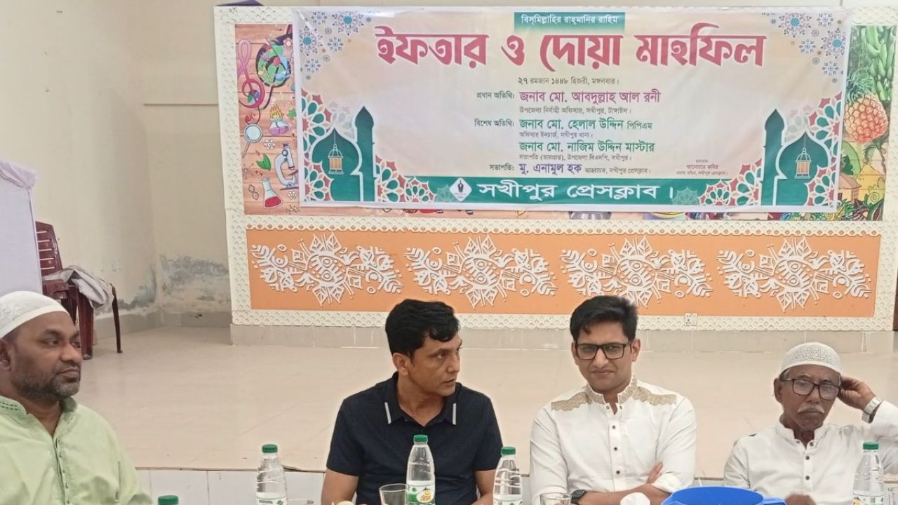 টাঙ্গাইলের সখীপুর প্রেসক্লাবের আয়োজনে ইফতার ও দোয়া মাহফিল অনুষ্ঠিত হয়েছে। মঙ্গলবার (১৭ মার্চ) উপজেলা প্রশাসনের হলরুমে এই আয়োজন করা হয়।