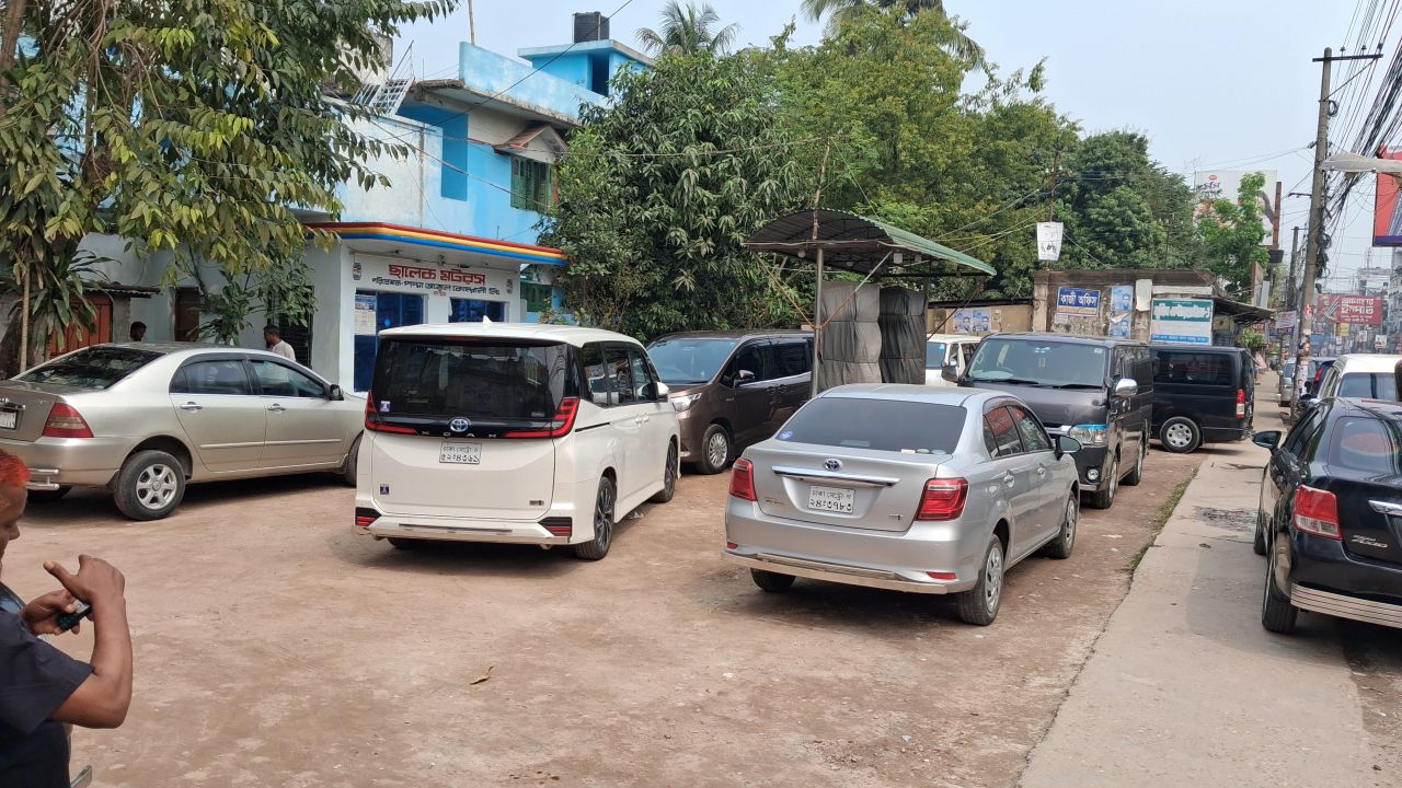নীলফামারী যাওয়ার পথে একই ভোগান্তির কথা জানান ওষুধ কোম্পানির কর্মী মোস্তাক আহাম্মেদ। তিনি বলেন, ‘পাঁচটি পাম্প ঘুরেছি, কোথাও তেল নেই। জরুরি কাজ থাকলেও যেতে পারছি না।’