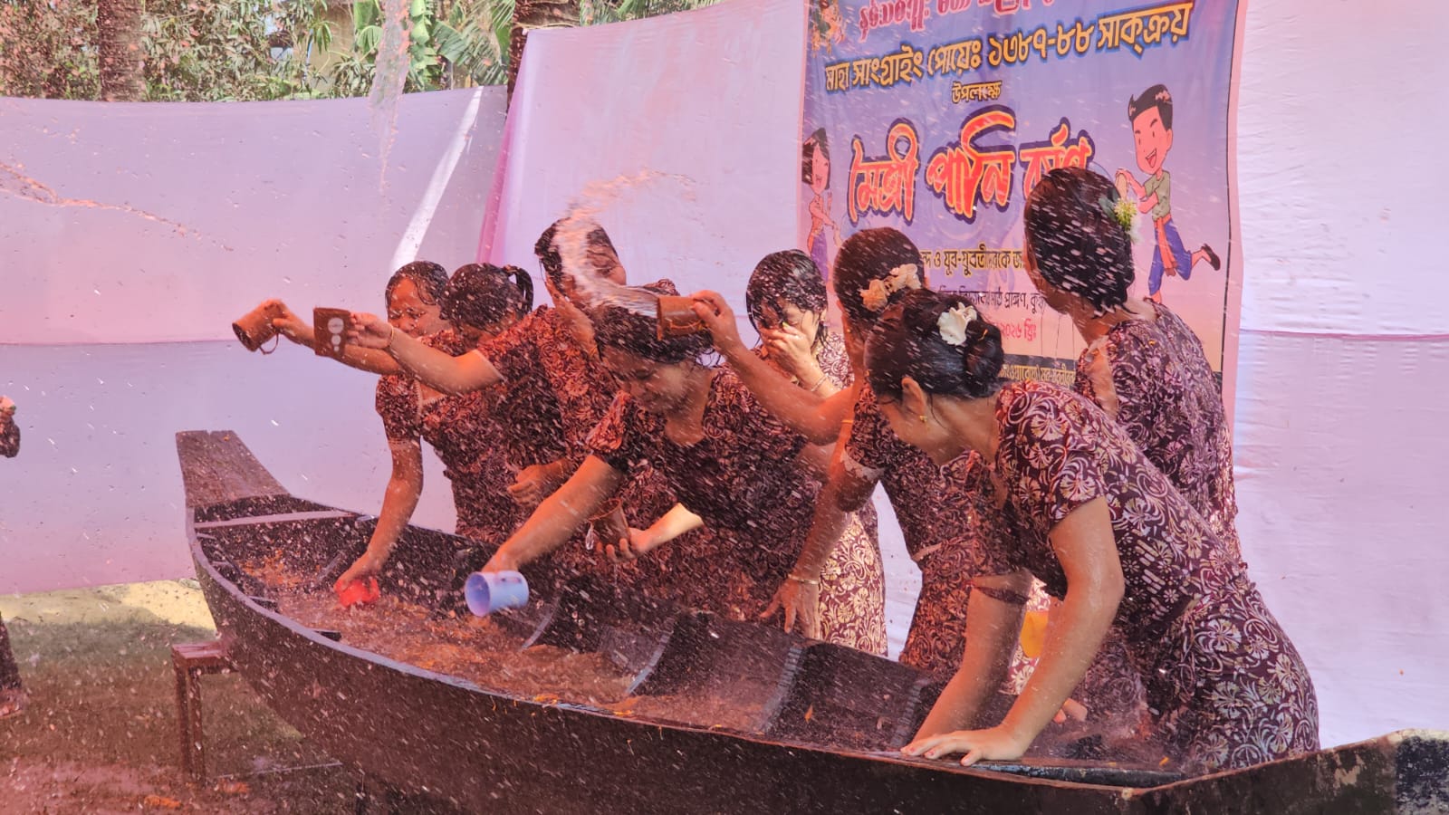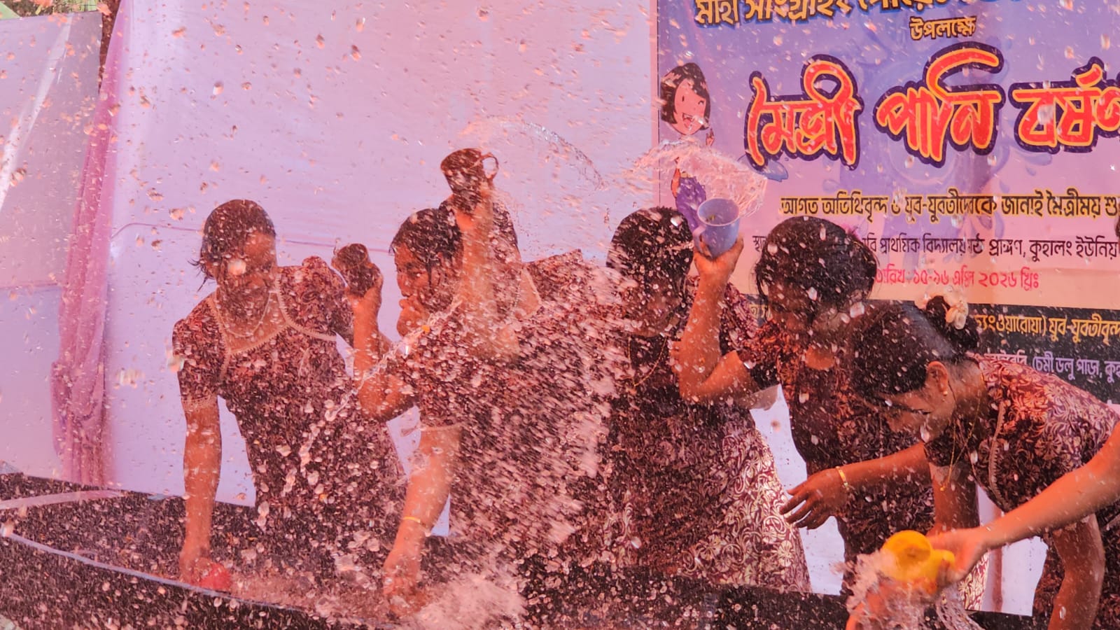 তরুণীদের জল ছিটাচ্ছেন তরুণরা।