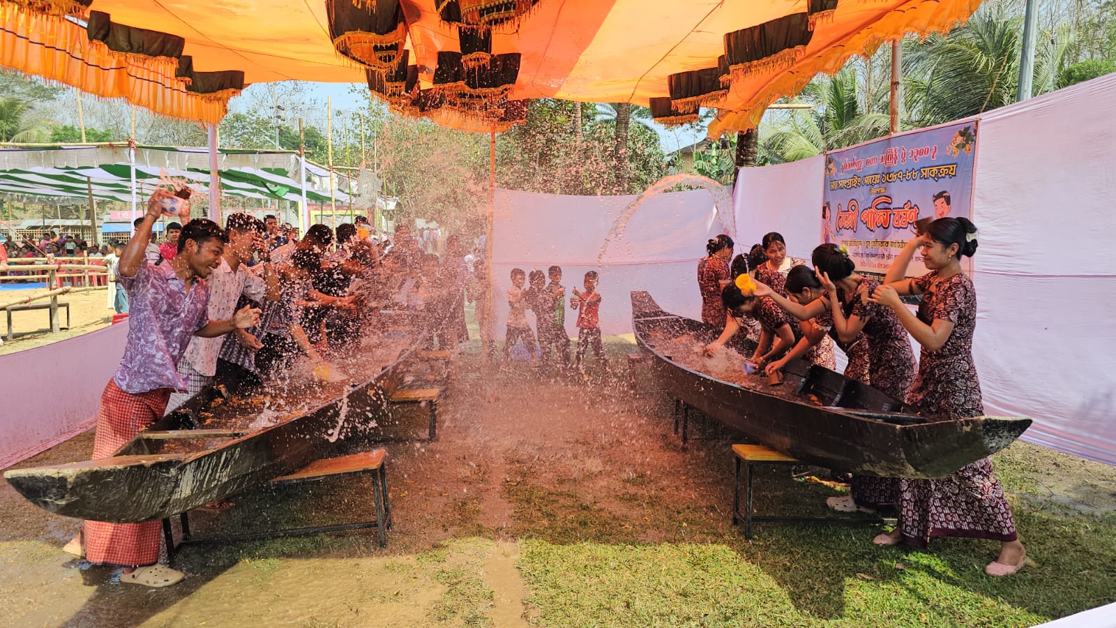 একে অপরের গায়ে পানি ছিটিয়ে পুরোনো বছরকে বিদায়